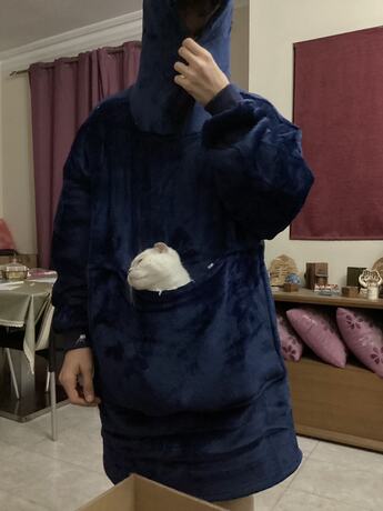 基本は人が着て暖まるアイテムです。その上で、大きめポケットで 愛猫・愛犬といっしょに過ごす在宅時間に相性のいい設計です。