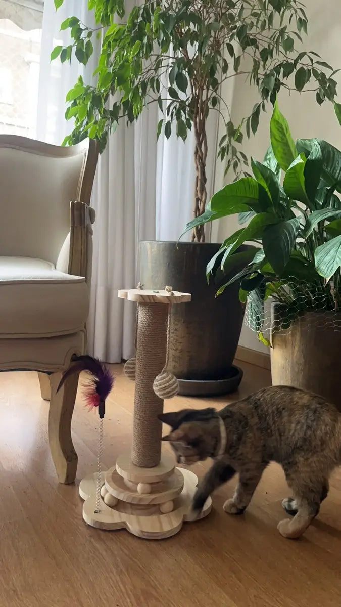 窓から外を眺めるのが大好きな猫のために、日当たりの良い場所に設置してみませんか。ハーモニーピラーは、爪とぎ、遊び場、そして特等席の展望台として機能します。日光浴をしながら満足げに伸びをする愛猫の姿は、何物にも代えがたい癒やしとなるでしょう。